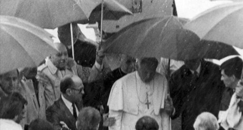 La visita, impulsada por el entonces gobernador José Antonio Romero Feris, estuvo marcada por una intensa lluvia que generó incertidumbre desde las primeras horas del día. Las condiciones climáticas obligaron incluso a cerrar el aeropuerto, lo que puso en duda el arribo del avión papal.