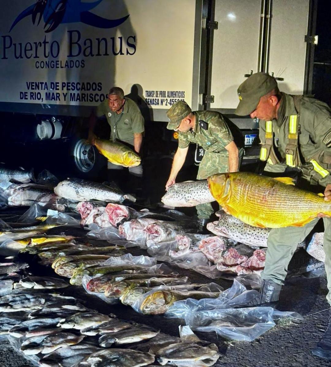 Durante el procedimiento, los agentes detectaron distintas especies ícticas que eran trasladadas sin la documentación correspondiente y en infracción a la normativa vigente. Entre los ejemplares incautados se encontraban dorados y surubíes, especies cuya captura y comercialización se encuentra prohibida.